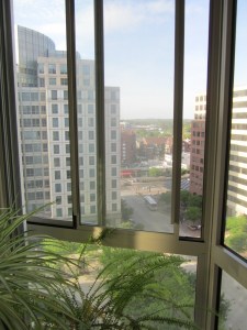 For my second blog post ever, I will give you a tour of my apartment. I had been meaning to take good pictures of my apartment ever since I finished decorating, and even more since I decided to move to a new apartment — but somehow I’d never gotten around to it. At first I didn’t have a digital camera. Then I found that floor-to-ceiling windows make decent photography really hard on anything other than a cloudy day. Fortunately, the stars finally aligned today: clouds, a break from the 80-hour work-week, and a very nice request from Quynh-Nhu for a few pictures.
