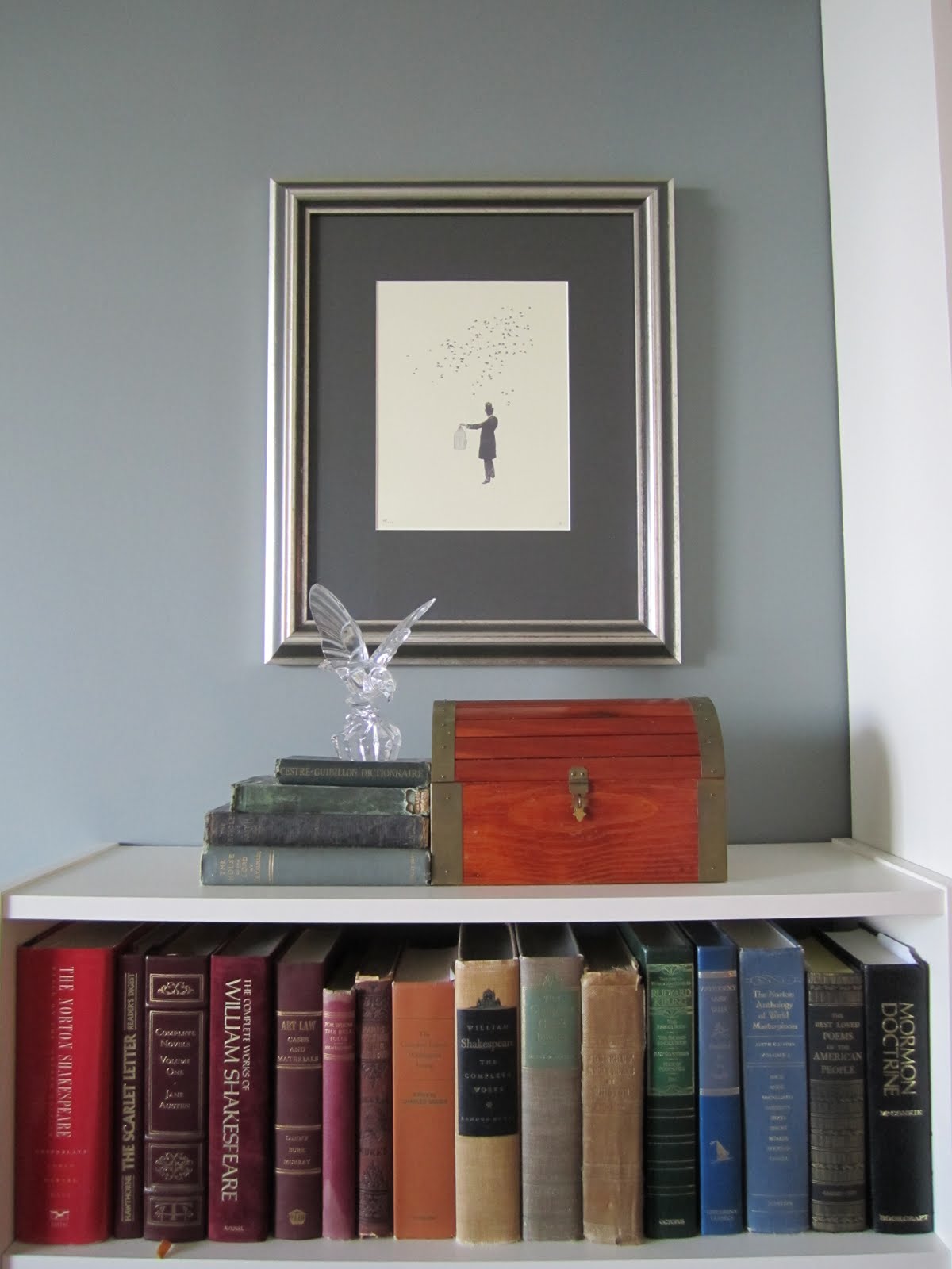 Dining Room & Library. When I moved into this apartment, I had a stack of clothes and ten boxes of books. Period. I slept on the floor and had nothing to eat (or to eat with), but I could read anything from Plato to Saint Augustine to Shakespeare to Moliere to Jane Austen (and a few ridiculous vampire romance novels, too, but let’s not get into that). Naturally, the first thing I bought was a bookcase. Or five.