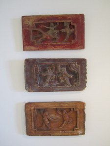 Entryway. When you walk in, you’re immediately greeted by three wooden panels that I found in a bucket, covered in mud, in the Chelsea Flea Market in New York. The guy told me they were pried from an antique Chinese bed. Bad for the bed; good for me. The bas-relief carvings are either of people dancing, or of people fighting. Either way, they’re kind of pretty.