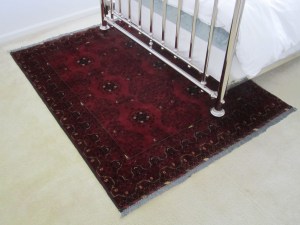 Under the bed is the Turkish rug I got in Istanbul. Unlike the American-made rug in the living room, this rug folded up into a very small bundle; so small, in fact, that I could carry it onto the airplane with me! It’s also gorgeous and incredibly soft — and really hard to photograph well. This is the best I could come up with: