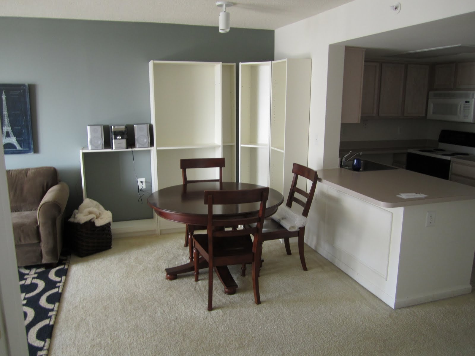 Yesterday morning I rolled out of bed, bought out the box supply of the UPS store across the street, and in the next 24 hours transformed my apartment from this: