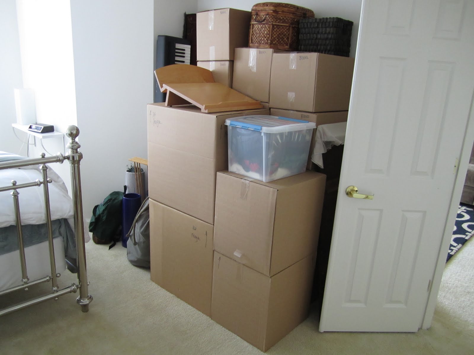 During college I prided myself on being able to move the entirety of my belongings in a single trip in a min-van (thanks, Lady!). Those of you who remember what my apartment looked like before probably suspect that I’m a bit beyond the mini-van stage (and you’re right), but I’m happy to report that I’m still pretty lean. All my possessions (except the furniture and some toiletries) condense pretty nicely into a manageable stack of boxes: