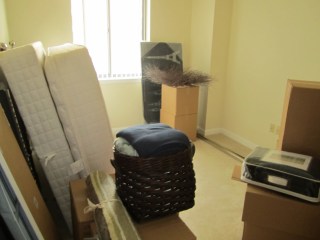 I got up early on Saturday and set about finishing the remaining tasks that needed to be done before the movers arrived at 3pm. I bought some more boxes from UPS, dismantled the dining room table and desk, cleaned the bathroom and kitchen, vacuumed everywhere. Then I went over and checked into my new place, which was all pristine and ready to go: