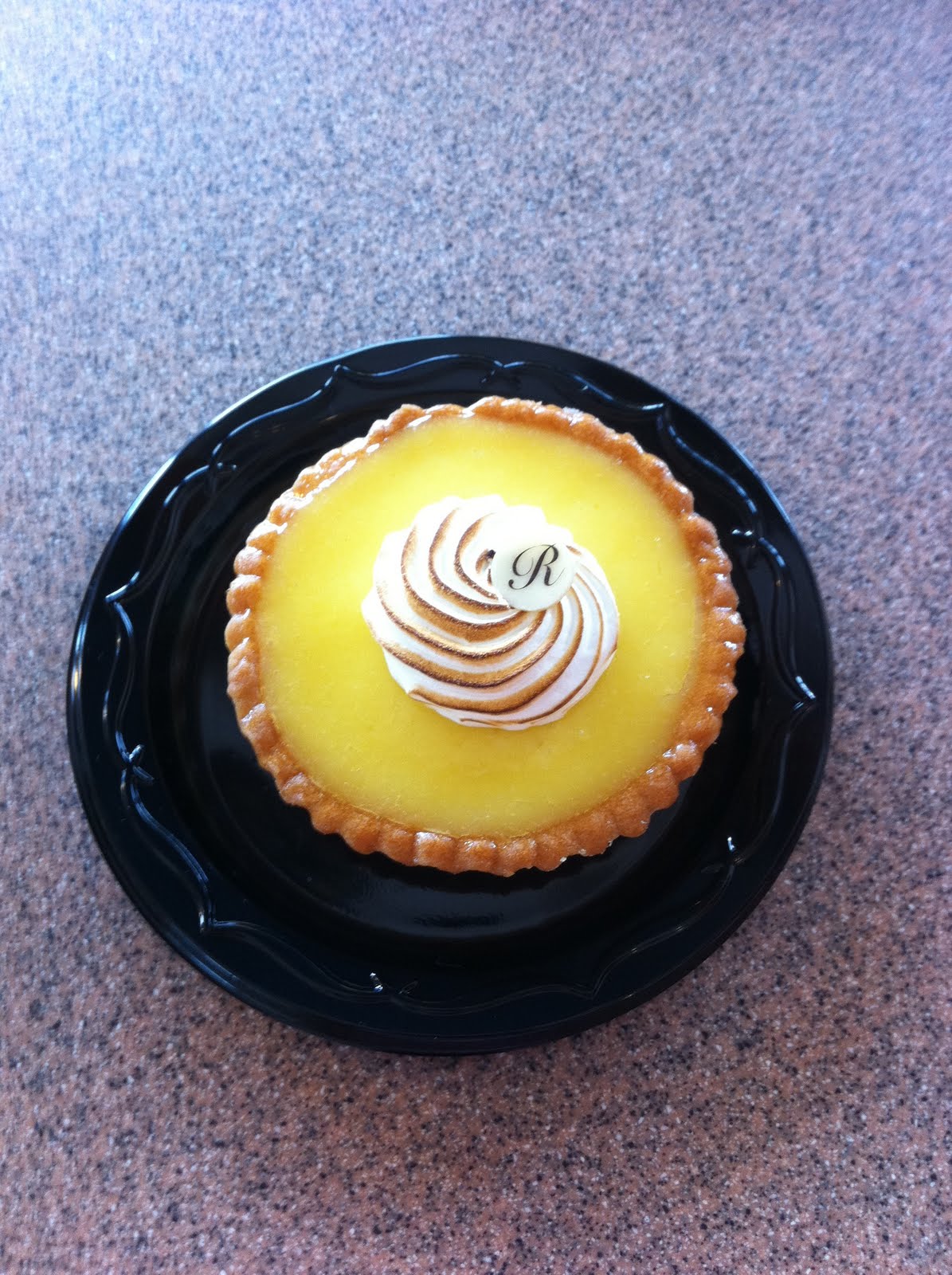 Yesterday in the midst of errand-running (after the Italian store and the Lebanese store, but before the regular grocery store), Amanda and I stopped at a French pastry shop for a little pick-me-up. In honor of mon père, I got a lemon tart. (Unfortunately there was no Perrier to be had.)