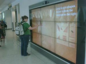 10. Playing with a giant tangram screen;