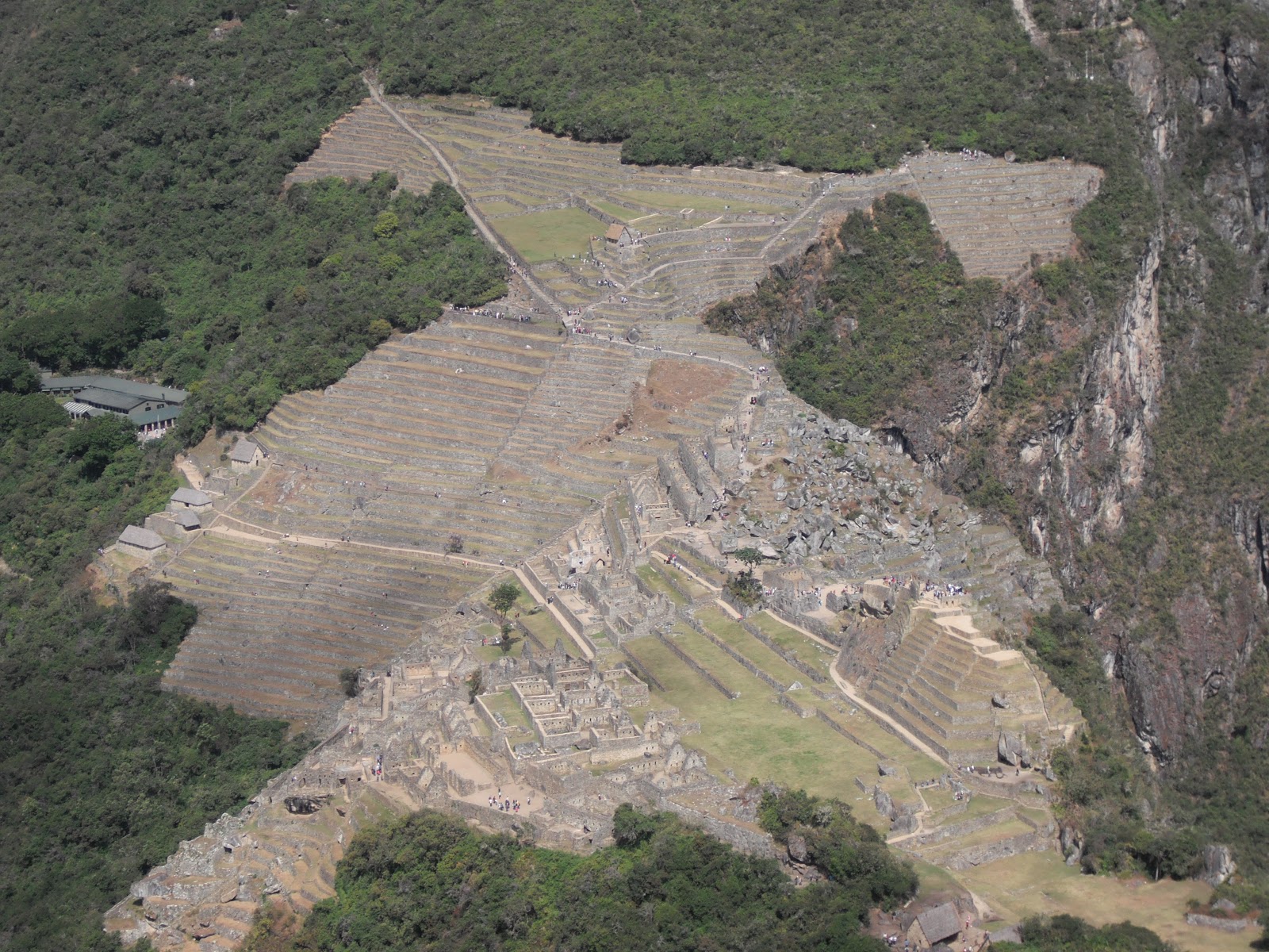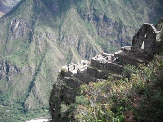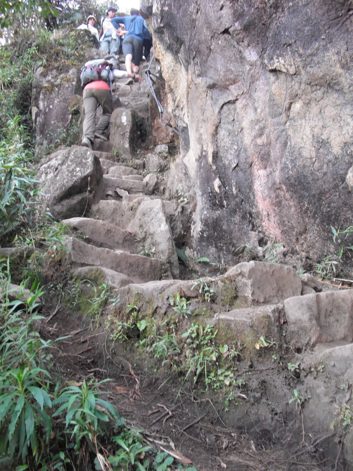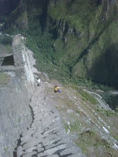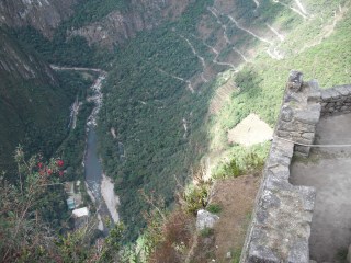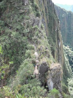 As you’ll recall from my post about Machu Picchu, I lucked out and got to be one of the 400 people permitted to climb Wayna Picchu on the day we visited. It is probably the steepest hike I’ve ever done (without crampons and and an ice-axe, at least), and it certainly was one of the most dramatic settings for any hike I’ve done — a double-whammy view of ancient civilization and a spectacular canyon. But still, a hike is basically a hike, no matter where you are. You keep putting one foot in front of the other until you get to the top of the mountain, and then you turn around and walk back down. You get hot and sweaty and out of breath, and when you get done you think you probably could have done it faster or stayed at the top longer or should have brought more water.
