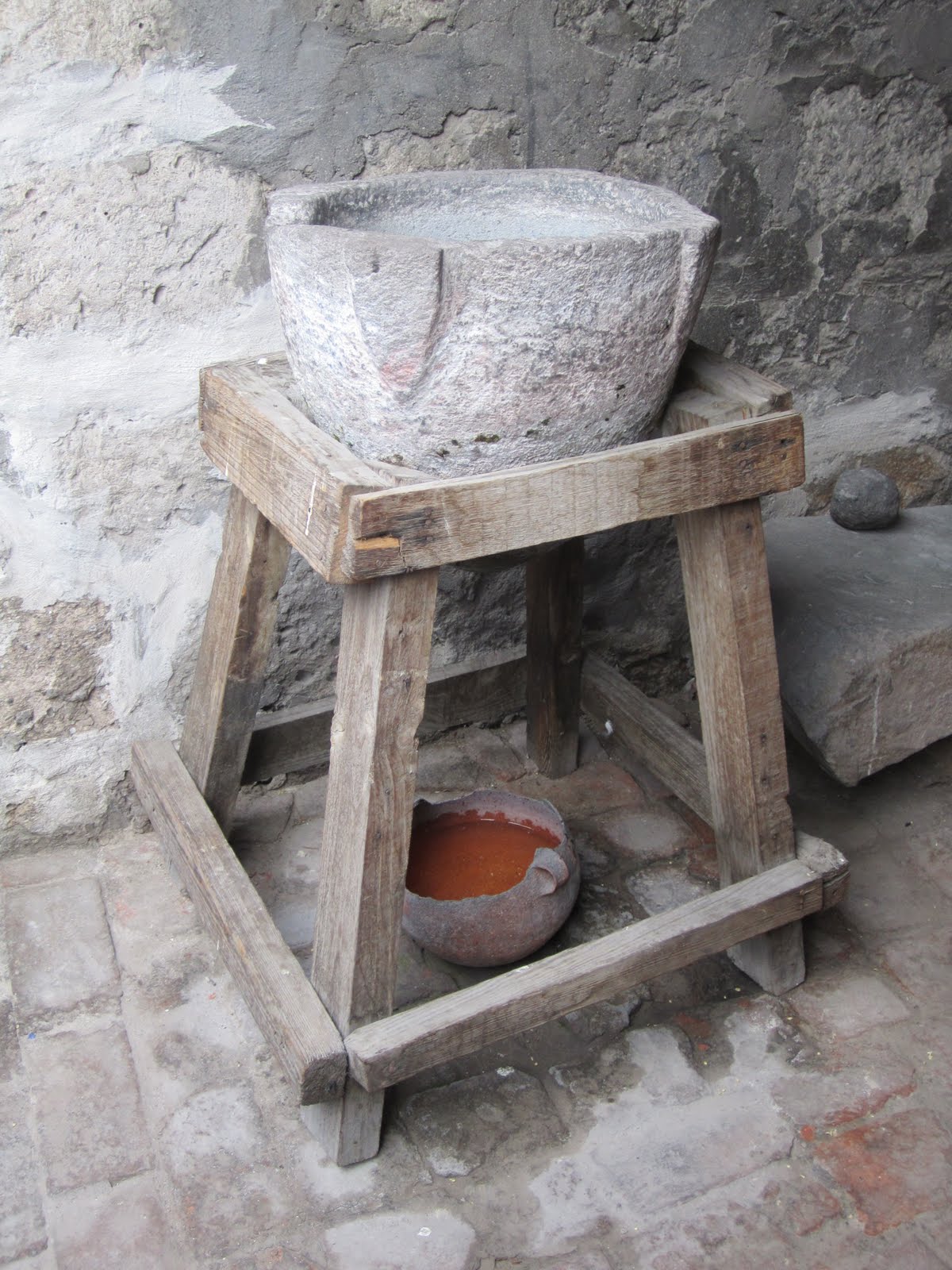 | Water filter: top container is porous volcanic rock; water is purified as it seeps through to bottom container |