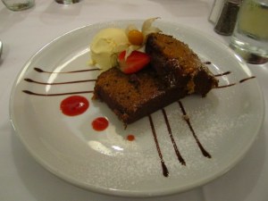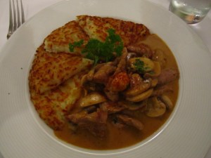After touring the city, we had time and money to spend, so we found another nice restaurant — this time a Swiss restaurant with delicious veal and desserts (and a piano player in the corner).