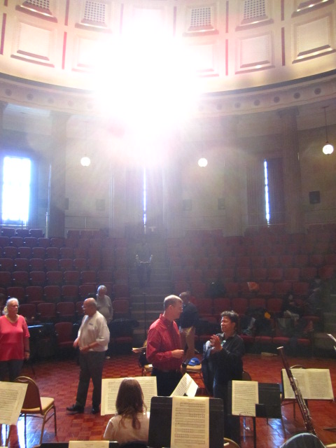 The George Washington Masonic Memorial is an impressive landmark that’s hard to miss — it towers over the city of Alexandria, Virginia, on a hill at the edge of Old Town. The main entrance leads into a hall heavy with the sense of its own monumentalness, full of columns and too much black marble. If you step through the velvet ropes between the columns, pass a small back door marked “Private” and descend a winding staircase to the lower level, you get to a small round theatre. Tomorrow I’ll be singing Rossini’s Stabat Mater there as part of a joint concert with the Met Singers and The Singers’ Project. This morning was our dress rehearsal.