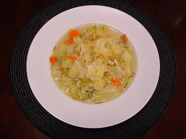 The recipe calls for cabbage, potatoes, turnips, carrots, onions and rice; I threw in celery, chicken broth and garlic. It was fresh, hearty and delicious, and I’ll have leftovers to hold me through the week. Best of all, chopping all those vegetables gave me a long time to talk to Ashley on the phone.