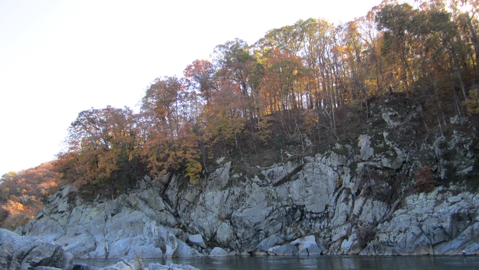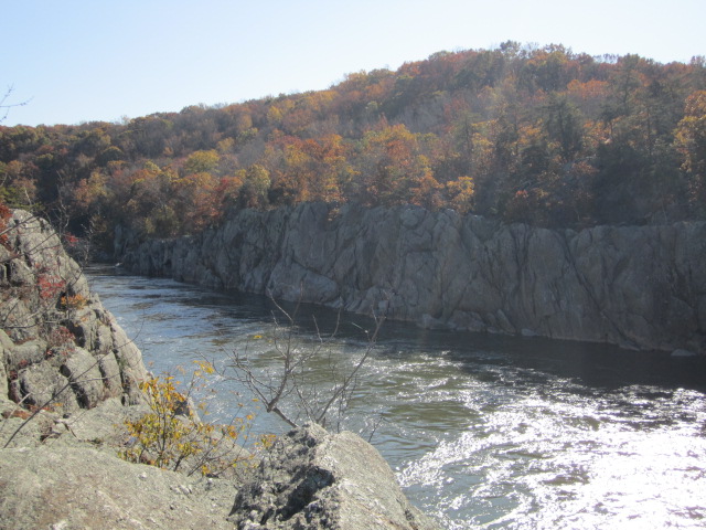 I went hiking yesterday on the Billy Goat Trail, which clambers along the Maryland banks of the Potomac River for several miles below the Great Falls. It’s a crowded but lovely hike. The weather was gorgeous and the leaves, although just past their peak color, were still spectacular. The profusion of fall color and the extended “sweater weather” season make autumn in DC arguably the best season of the year (although I always say the same thing about springtime when the azaleas bloom).