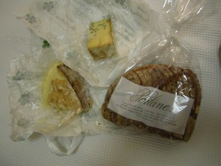 To keep our caloric intake up, our last stop was at a fromagerie. The shop was closed when we arrived, with a sign indicating that it would open in half an hour. We could smell the cheese wafting through the cracks in the door as we stood outside waiting. !!! Once inside, we told the guy to pick two adventurous and distinct cheeses. We ended up with a Stilton and some uber-creamy cheese that I can’t remember the name of. We took these home and ate them in our hotel room after the ballet. Both cheeses were very pungent and absolutely delicious.