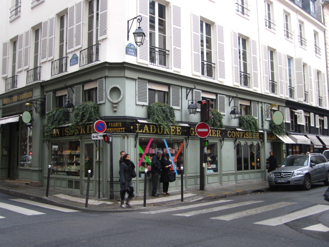 Like walking into a giant Easter egg. Reputed to have the best macarons in Paris. (I was scolded for taking a picture inside the shop. I am SUCH a vulgar tourist — gah!)