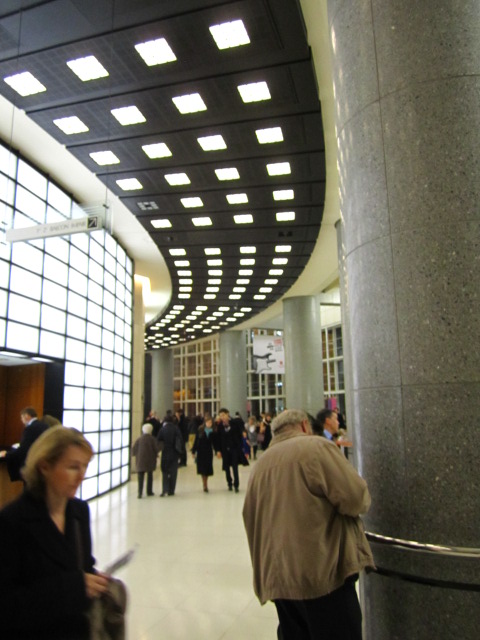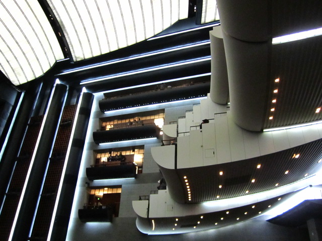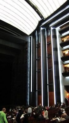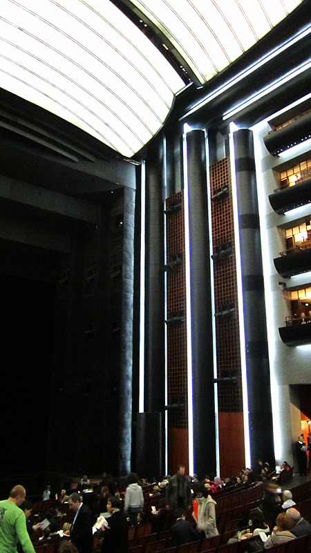 The opera house itself, however, inspired a most vehement ambivalence. The exterior and the lobbies are dreadful — those elements of the building are indistinguishable from any unfortunate convention center, sports arena or subway stop. The auditorium itself, however, has an vast, Japanese sci-fi feel that somehow seems to enhanced the feeling of being transported to another world while watching the performance.