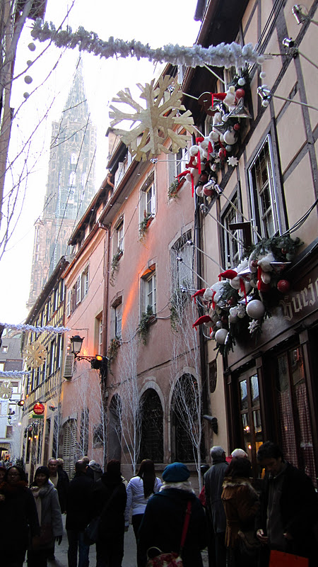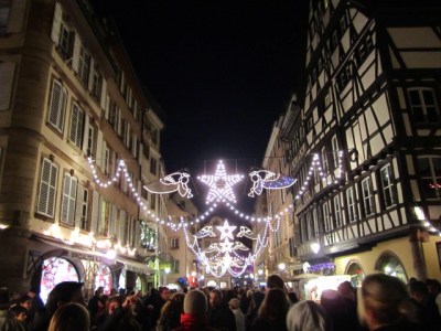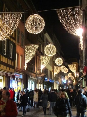 Strasbourg claims to be the capital of Christmas — and boy, does it go all out! The city center is decked out in lights, decorations and general Christmas cheer. It’s delightful but, on the first day of the season (which is when we visited), it’s also absolutely packed with people. I haven’t seen so many people since the Halloween parades in Greenwich Village in New York! Holy cow!