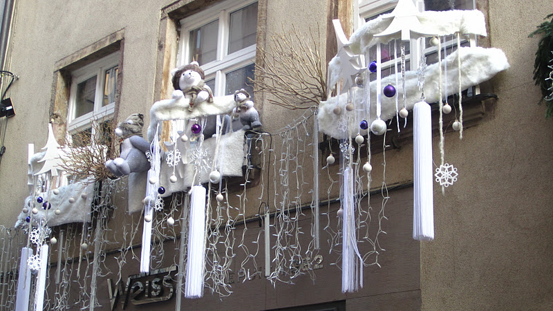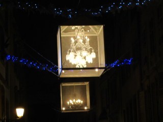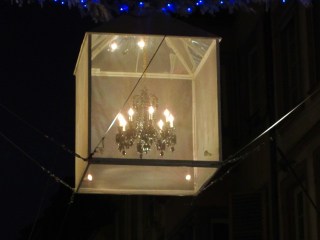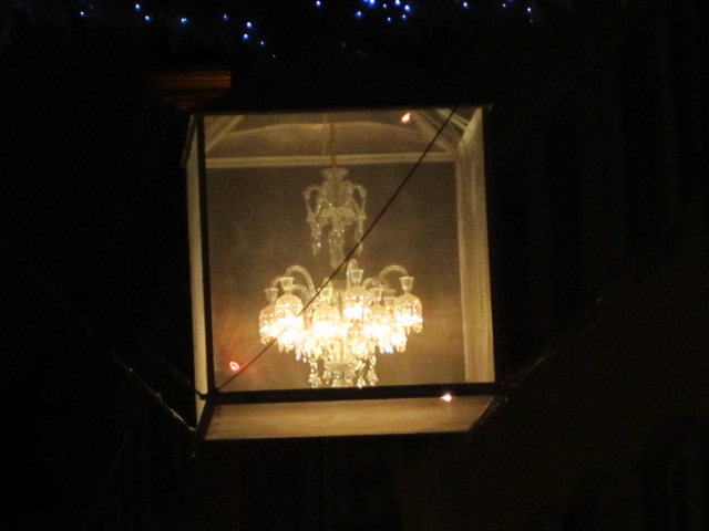 My absolute favorite element of holiday décor are the chandeliers that hang over the streets.
