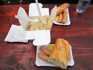 We had literally just finished our sausage and sauerkraut when we came upon the raclette stand. When Amanda told me she’d never had raclette, I announced that we would be having an emergency second lunch to remedy that travesty — because friends don’t let friends go through life not knowing about the goodness of raclette.
