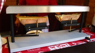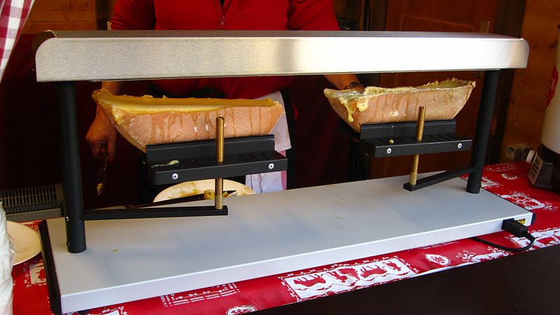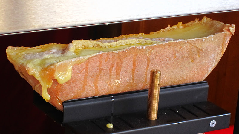 | I’d never seen these raclette grills before — they melt the cheese and then skim the melted portion off onto your plate |