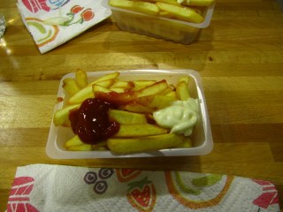 By the end of the day we were tired of dealing with the crowds in the streets, so we ducked into a little kebab place near the cathedral and got doner kebabs and frites.