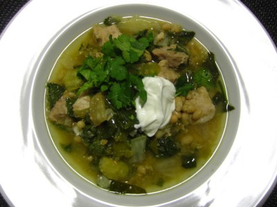 With these beauties in hand, I was able to try out a new chili verde recipe. Toss the tomatilloes together with some pork sirloin, navy beans, hot green chilies, onions, cumin, garlic, chicken broth and chopped spinach. Cook for six hours, and then serve with a dollop of sour cream and a cilantro garnish. Yum!