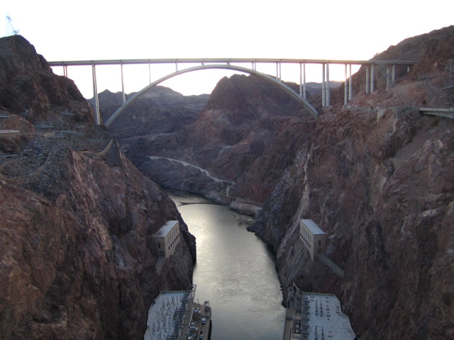 Our first excursion was to see Hoover Dam and the new Bypass Bridge that has been built to alleviate traffic on the old dam road. The dam was authorized by President Coolidge in the 1920s, built during the Great Depression by President Roosevelt, and named after President Hoover. It’s a remarkable structure that provides drinking water to Las Vegas and the surrounding area, as well as electricity to Los Angeles.