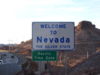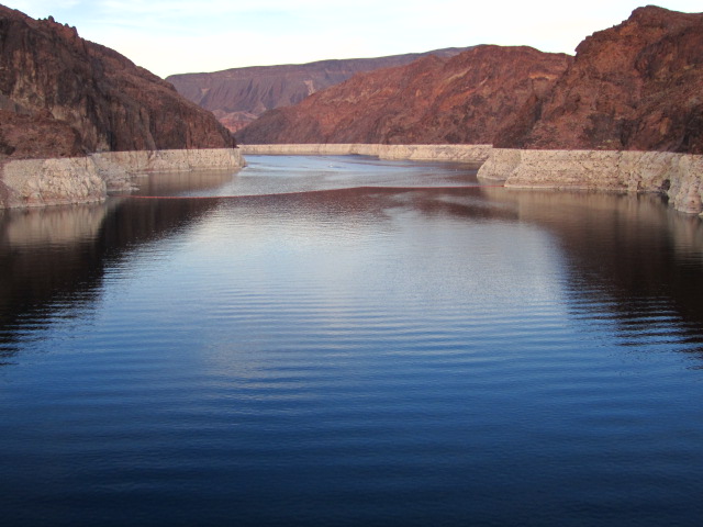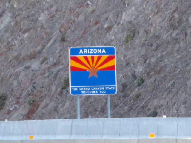 The state line between Nevada and Arizona runs down the middle of the river, which means we got to do a little time travel as we crossed the bridge (AZ is in the Mountain Time Zone, while NV is in the Pacific Time Zone).