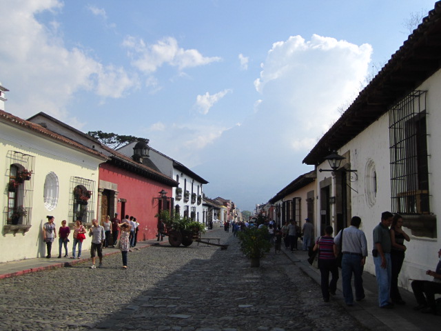 It’s nestled between three big volcanoes (Pacaya, Fuego and Agua), which contribute to its seismic instability, and is a lovely collection of paved cobblestone streets lined with brightly colored stucco houses.