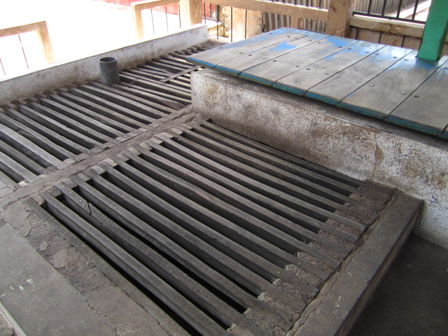 | The platform in the upper right is the scale, the beans fall through the slots into a basin of water, where the ripe ones sink and the unripe ones float |