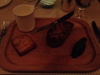 Followed by an 8 oz dry aged strip loin steak with creamed spinach and potatoes. There was a white sauce that seemed innocuous at first but turned out to be intoxicatingly delicious — I couldn’t tell what it was, but it made me think of an emulsion of a salty cheese, if there is such a thing.