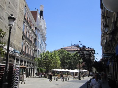 A marker in the ground in the Plaza de la Puerta del Sol marks the geographic center of Spain. It’s also in the middle of a bustling hub of city life, with multiple crossing subway and bus lines and radiating streets lined with boutiques and historical buildings and full of tourists, shoppers and street performers.