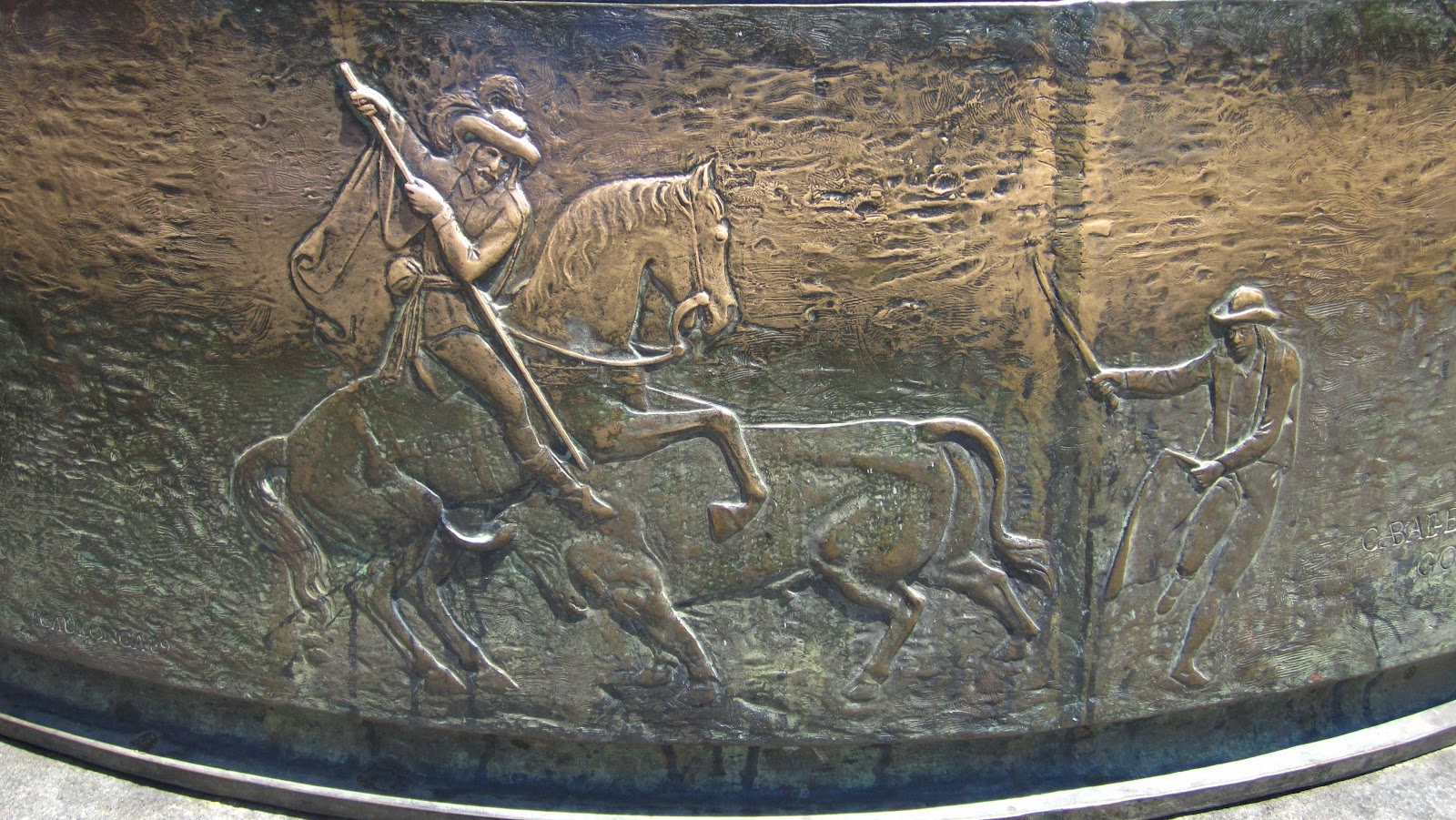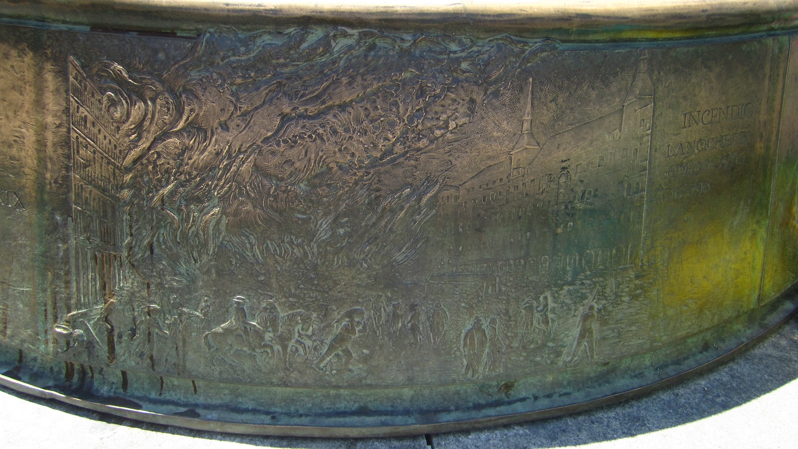 Bas reliefs in the pedestals at the base of the lamp posts described the fun things they used to do in the plaza. For example, there were bull fights . . .