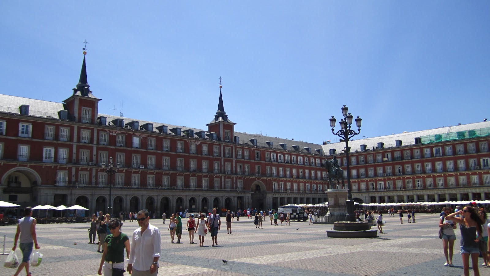 Alas, nothing quite so exciting happened on the square while we were there. The balconies — once the favored perch of weathy enthusiasts of auto-da-fe — are now home to sleepy flower pots.