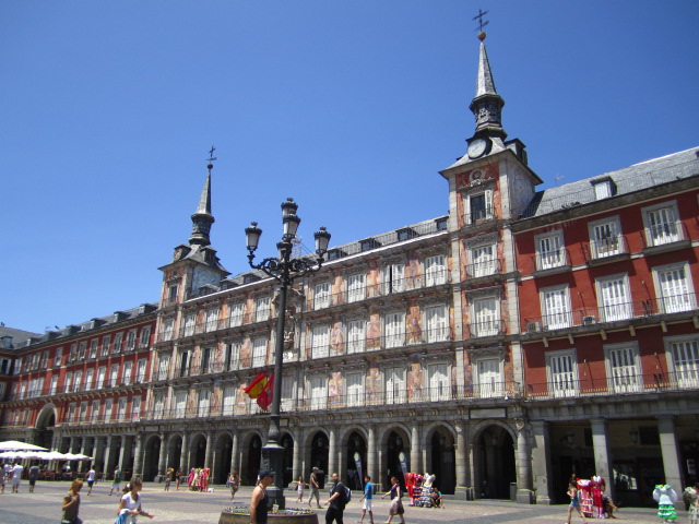 The Plaza Mayor is an impressive 16th Century square flanked by towers and shady arcades. The deep burnt red color was decided by popular vote the last time the square was restored.