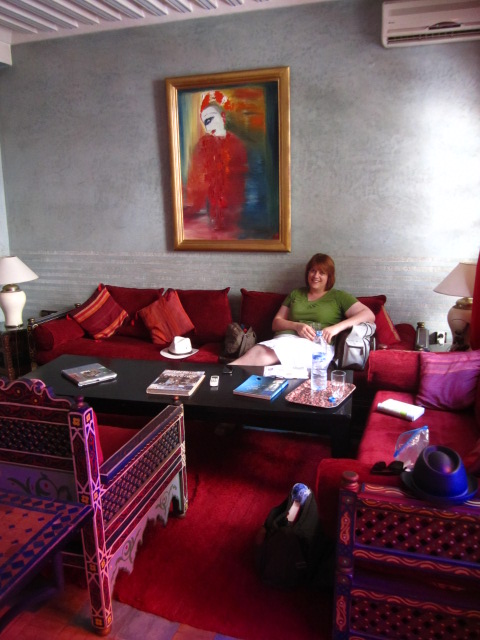 We entered and startled one of the house staff. She assured us that our room and bed was ready. Bed? We need beds — with an “s”. Ah. Right. Tout de suite. As she took care of that, we got to relax in the air conditioned salon with a giant bottle of water.