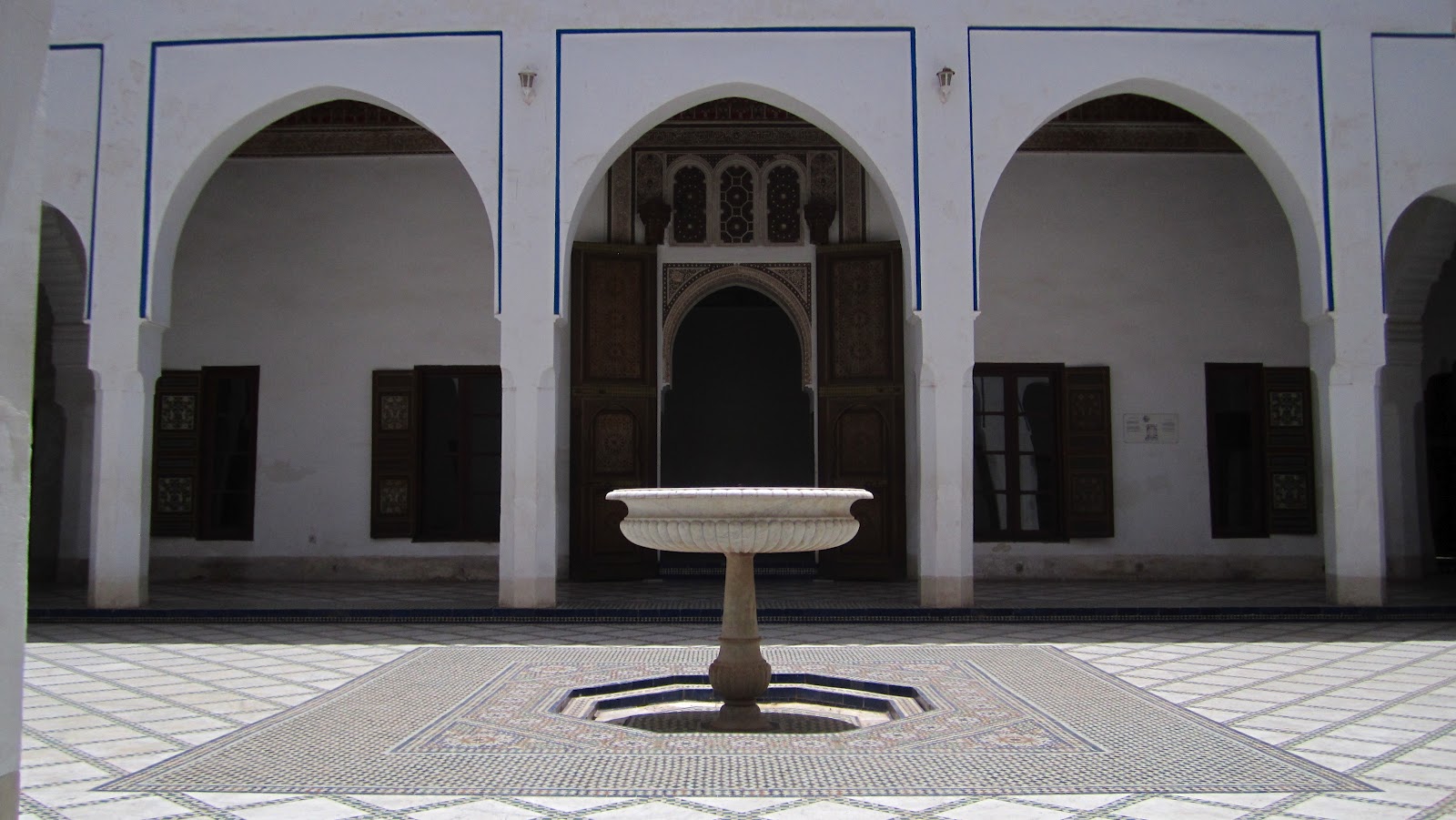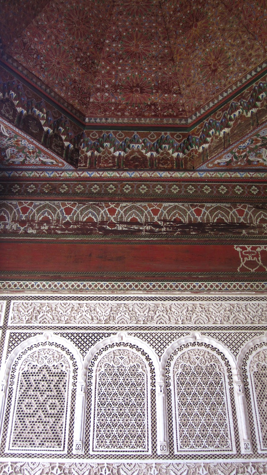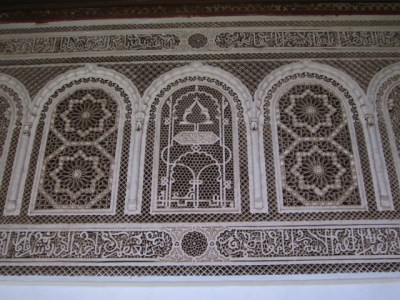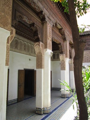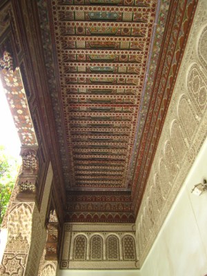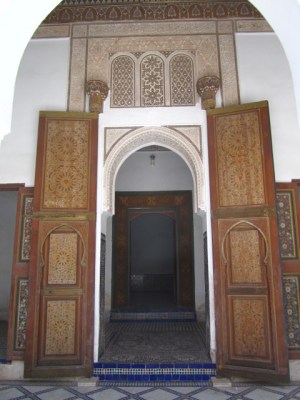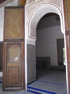 The Bahia Palace in an agglomeration of buildings constructed during the 1860s and 1890s. Master Moroccan artisans were hired to built upon and expand existing buildings, using their finest art. The Palace represents some of the best Moroccan art of that period, with elaborately painted ceilings, lintels, doors and windows.