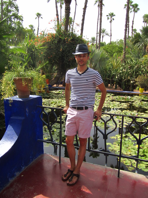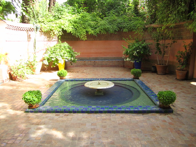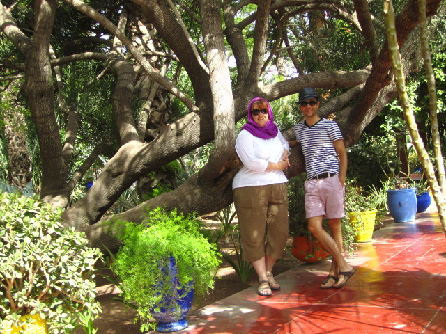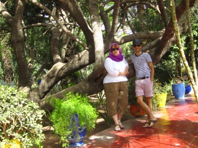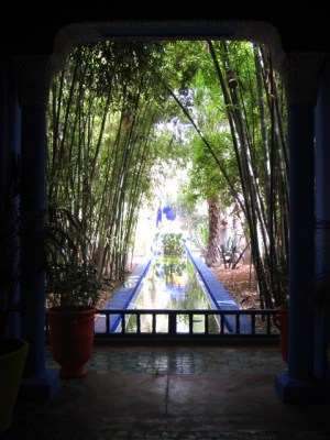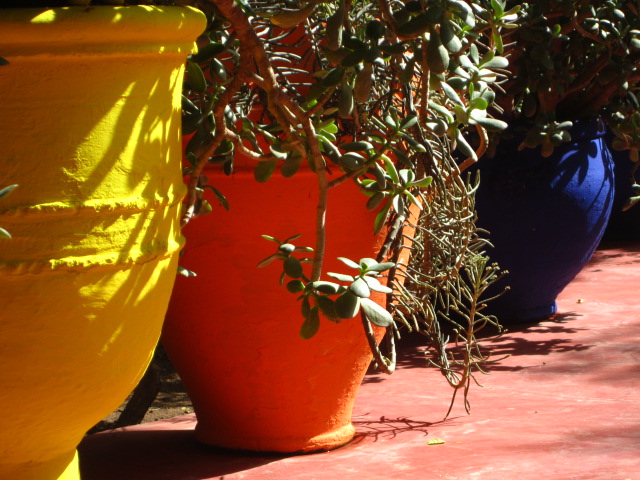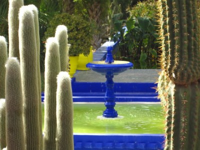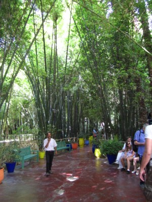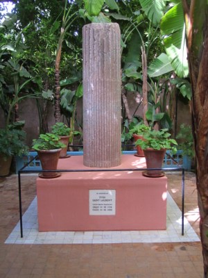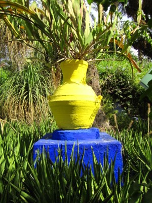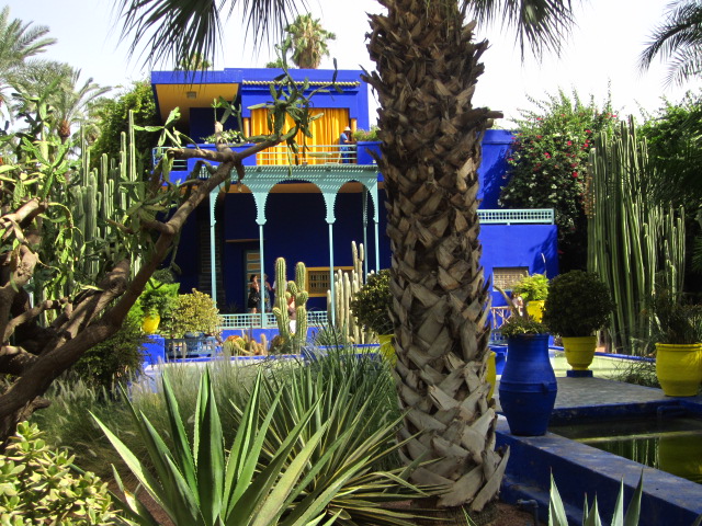 Jacques Majorelle was a French-born landscape painter during the first half of the Twentieth Century.  He settled in Marrakesh in 1917 and, from the 1930s until his death in the early 1960s, developed a fabulous walled garden around his villa, with plants from all around the globe.  After Majorelle died, the fashion designer Yves Saint Laurent bought the villa and garden in order to preserve them and maintain their openness to the public (Majorelle had opened the gardens to the public in the 1940s).  YSL, in turn, died in 2008 and bequeathed the lot to the city of Marrakesh.