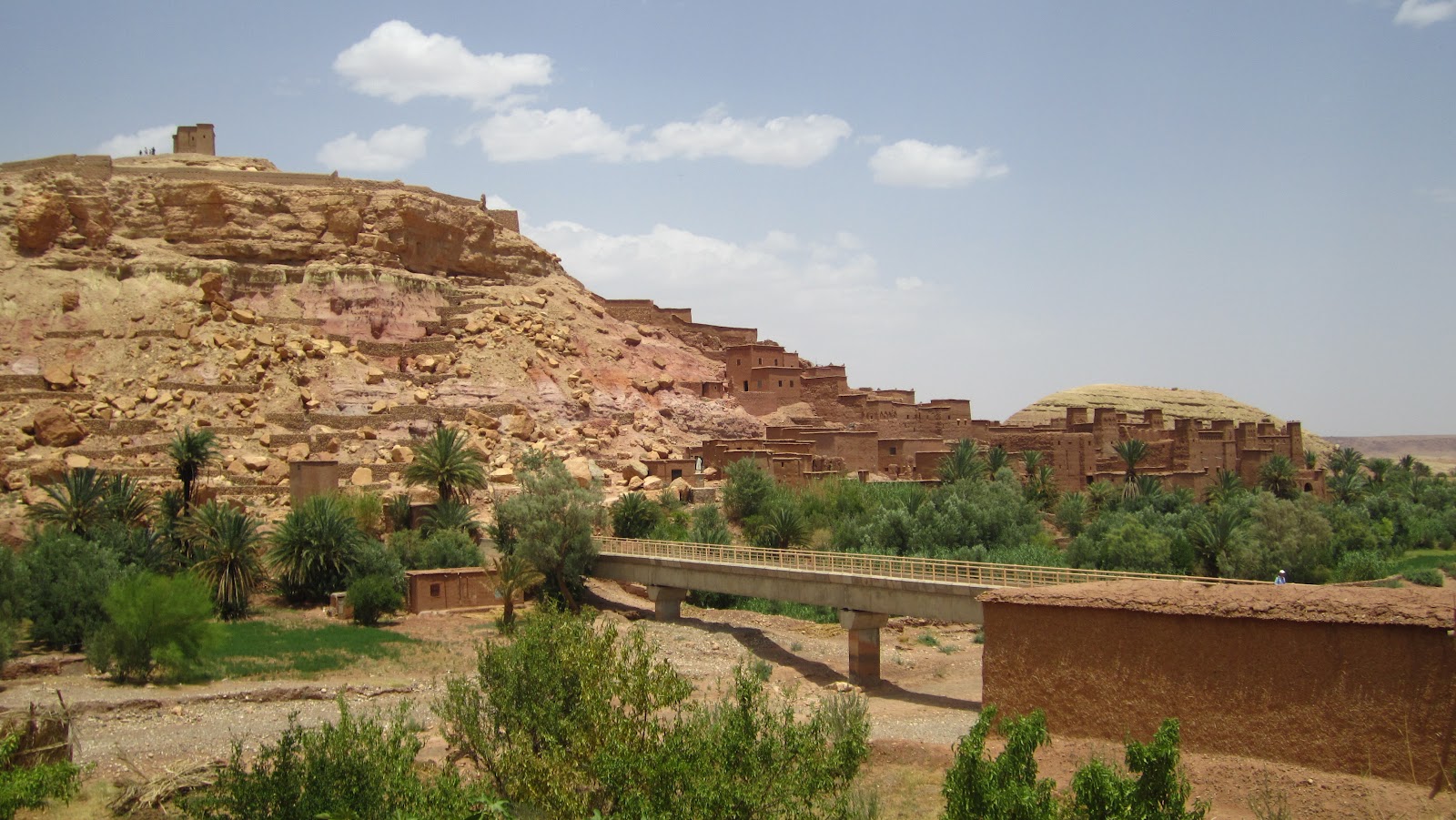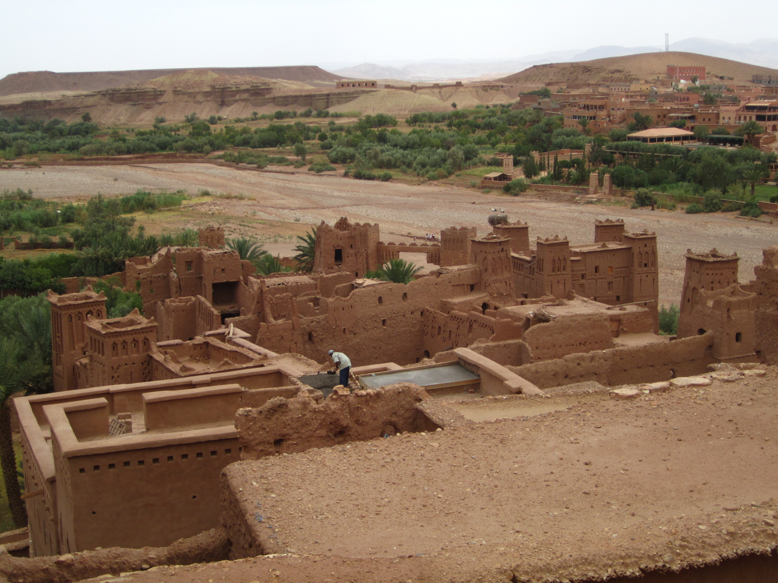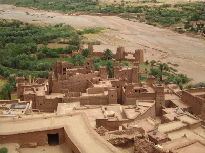 Kasbahs enjoyed their hey-day hundreds of years ago as fortified outposts along the trading route between Marrakesh and Timbuktu. The camel caravans would trek across the desert, stopping at the kasbahs along the way. This particular kasbah was built in the 13th century and is now a UNESCO World Heritage site. All the buildings are made of mud brick, which is vulnerable both to earthquake (a large portion of this kasbah was destroyed by the giant earthquake that struck Portugal in 1755) and to rain — it needs all the help it can get to survive.