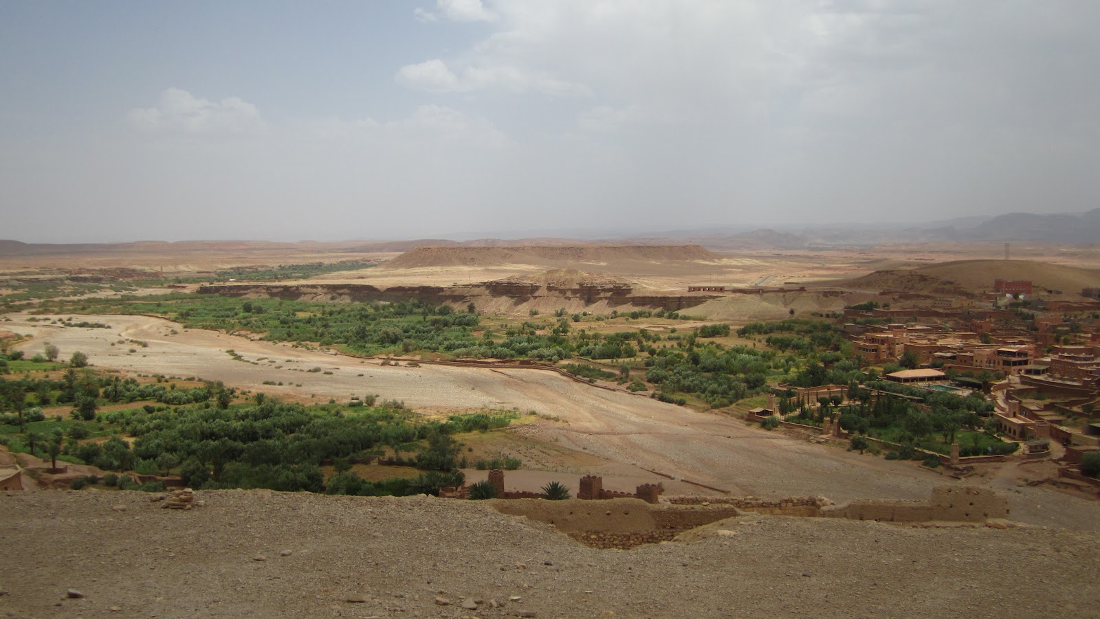 Having left the Atlas mountains behind us, the land flattened out and once again became arid and barren. As we drew near to the city of Ourzazate, our driver suddenly abandoned the perfectly good paved road and struck out into the middle of nowhere over a pair of tracks in the rocky ground. Said explained that this off-road detour was a shortcut to one of the more famous kasbahs in Morocco.
