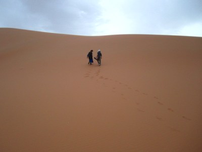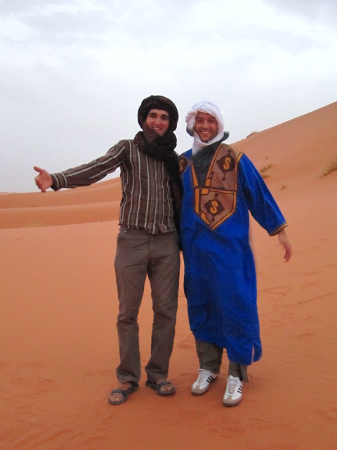 Said has suspected from day one that I might actually be Arab. He kept asking where my parents are from (“Are both of them American?”) until he finally came out and said that I look like I could be an Arabic guy from Casablanca or Rabat (the two big, predominantly Arab population centers in Morocco). The head scarf furthered that resemblance, and Said thought it would be fun to complete the effect by having me don his desert garb. He said I could call myself Mohammed.