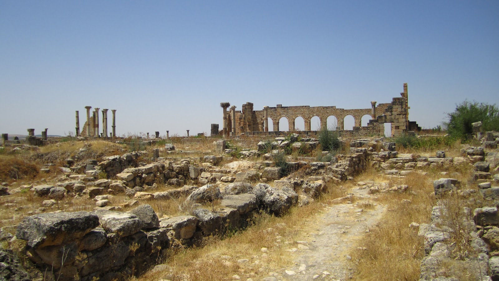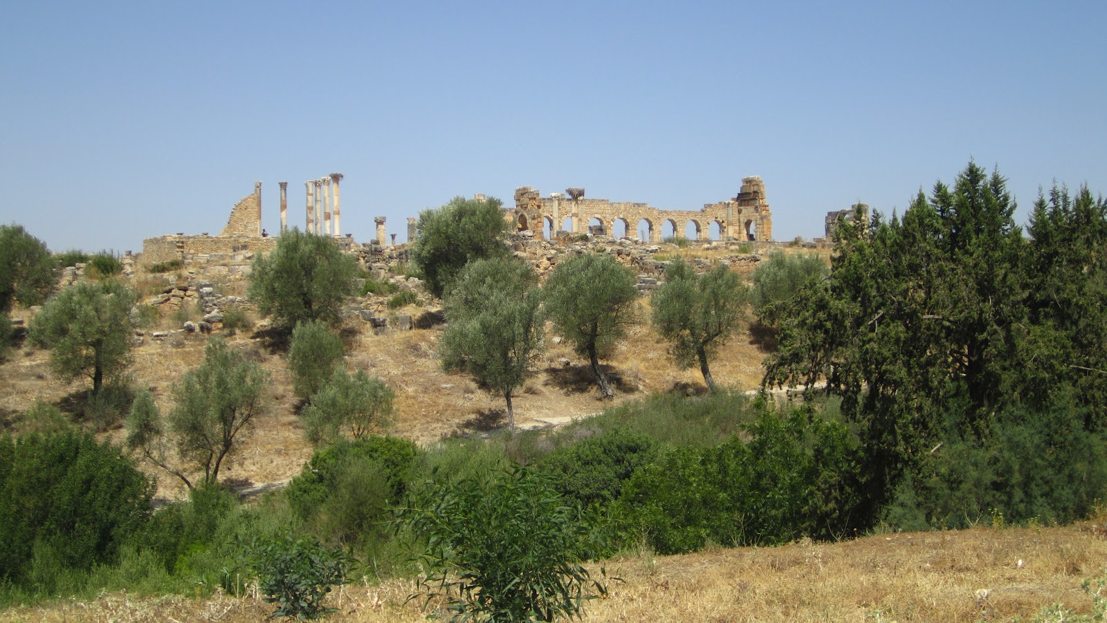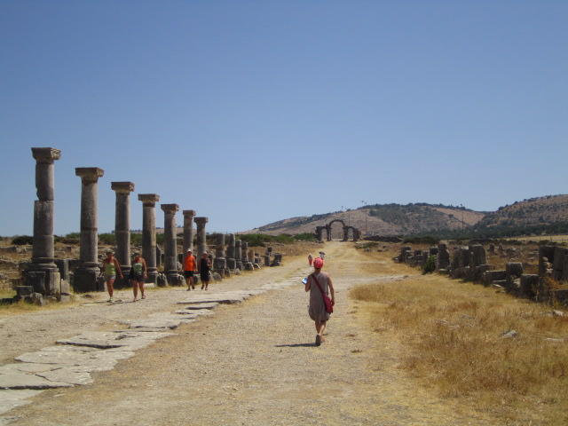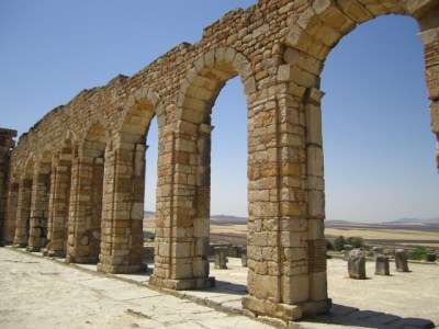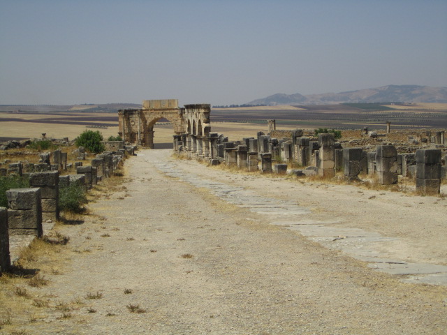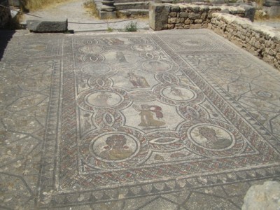 By the second century BC, the Roman empire extended through a network of fishing cities in northern Africa. During the last century BC, they established themselves in Volubilis, not far from current-day Fez. The city remained under Roman control until the Berbers drove them out in the 300s AD. The Arabs took over in the 8th century AD and remained until the place was leveled in the 1755 Lisbon earthquake. Today, it’s a city in ruins set among fields and olive orchards. We hired a driver to take us out to visit it. We’ve seen Roman ruins before, and in general these ruins didn’t stand out as particularly remarkable. But the mosaics were incredible — some of the best I’ve seen. Plus, everything was Roman and therefore familiar; it felt kind of like coming home and seeing all your old friends.