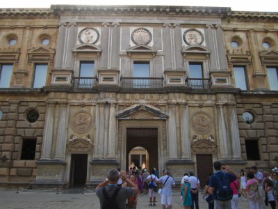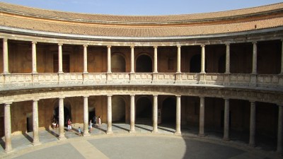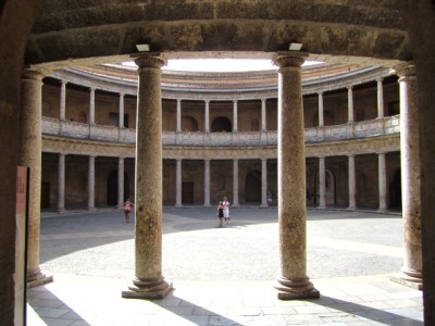 As I mentioned in the Alhambra post, the Holy Roman Emperor Charles V built a Renaissance palace on the grounds of the Alhambra. The most remarkable feature is the giant circular courtyard (some people think it was meant to have a dome). The Renaissance style is very different from the medieval Islamic architecture of the Alhambra — I very much enjoyed seeing the contrast.