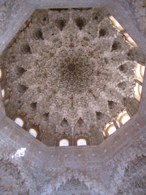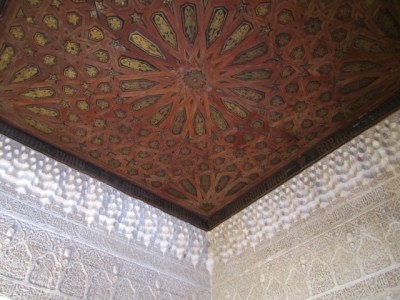 The ceiling below was by far the most magnificent. Arching over the room in which the emir received ambassadors, it is the closest I’ve ever felt to being under the stars while yet indoors. Really magical.