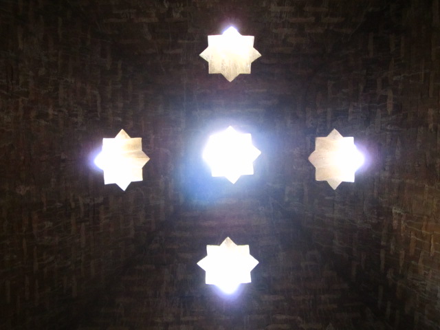The palace hammam was a small and simple building with lovely star-shaped sunlights piercing the domed roof. I loved how the stars multiplied as you progressed through the chambers: First one star, then another, then a whole sky full of stars. Just as in nature.