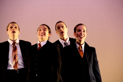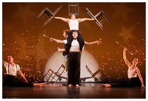 It’s a fun and physical and risky world. There were typical dance moves, of course (ball change!), but also lots of purely theatrical physicality. For example, we’d be given a scenario with general directions but the details would be left up to us. So, say you’re in middle school and you see your friends across the room, and you go to them, but you trip on the way — what do you do? Or, say you show up at a party and don’t see anyone you recognize; you wait a minute, then start grooving to the music on your own, only to realize that it’s actually someone else’s funeral and not your party at all — how do you react?