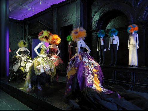 The McQueen dresses were just to the left of this shot.  I tried to take a picture but got yelled at — apparently photos are not allowed in special exhibitions; I’ve pulled all the photos here from the Met’s website.
