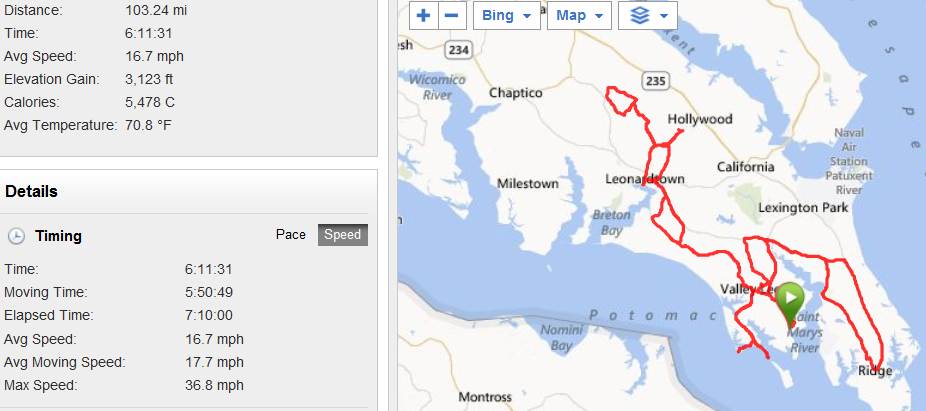 Only here’s the thing: Everything went absolutely perfectly. Like clockwork. In fact, it was one of the best rides of the entire summer. I felt fantastic and was able to ride hard and long through the gorgeous, lush farmland of southern Maryland — and with a finish time of 6 hours and 11 minutes, I was right on target with what I’d hoped for.