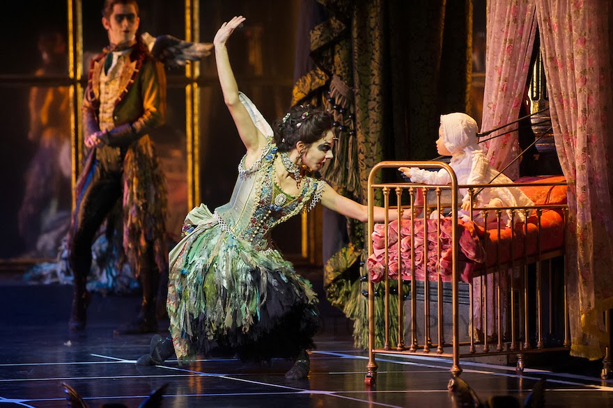 The first act is much as you’d imagine it to be. Set in 1890, the year Tchaikovsky premiered the original ballet, we meet the infant princess (a precocious and highly mobile puppet) in a stately, late 19th Century palace and witness the bestowal of gifts by all the good fairies. Only in addition to the traditional gifts of beauty and grace, the fairies seem to bless her with mischief and a sense of humor as well. She may only be a baby, but she’s got more personality (and is way less passive) than your typical gothic heroine.