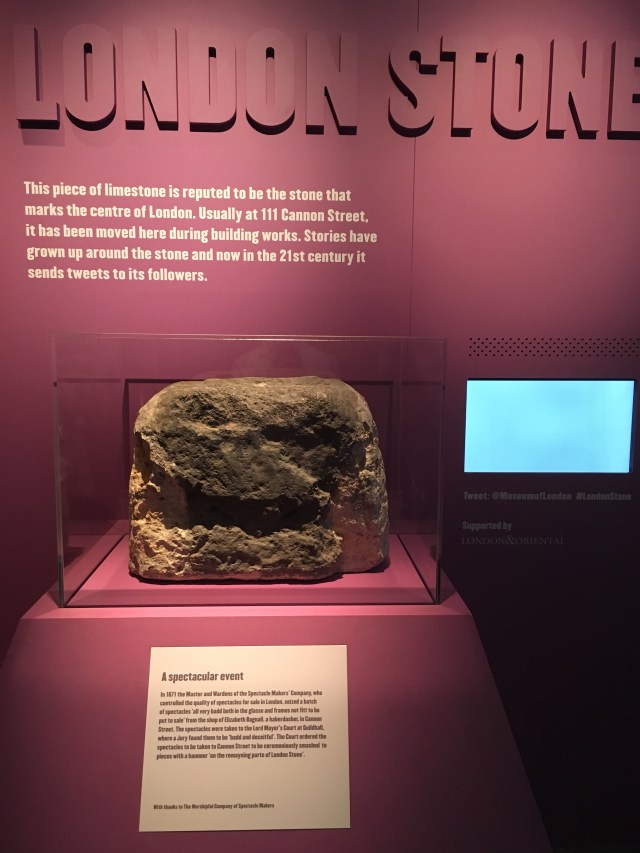 Finally you end up at the Museum of London.  The drab and somewhat grimy-looking building vastly undersold the quality of the exhibits — for a free museum on a hot Saturday, I thought it was pretty good.  The museum walks you through the history of the city, from the Romans to the Middle Ages to the Black Death and the Great Fire.  It weirdly skips WWII (I assume they’ve got other, better museums for that) and wraps up in the 2000s with the Olympic Cauldron.