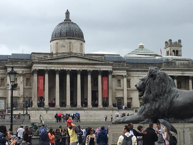 Museuming is exhausting. I may have snuck a surreptitious nap sitting up on one of the benches pretending to read my museum map. But I made it all the way through (except for all the stuff I skipped) and emerged onto a rain-slicked Trafalgar Square.
