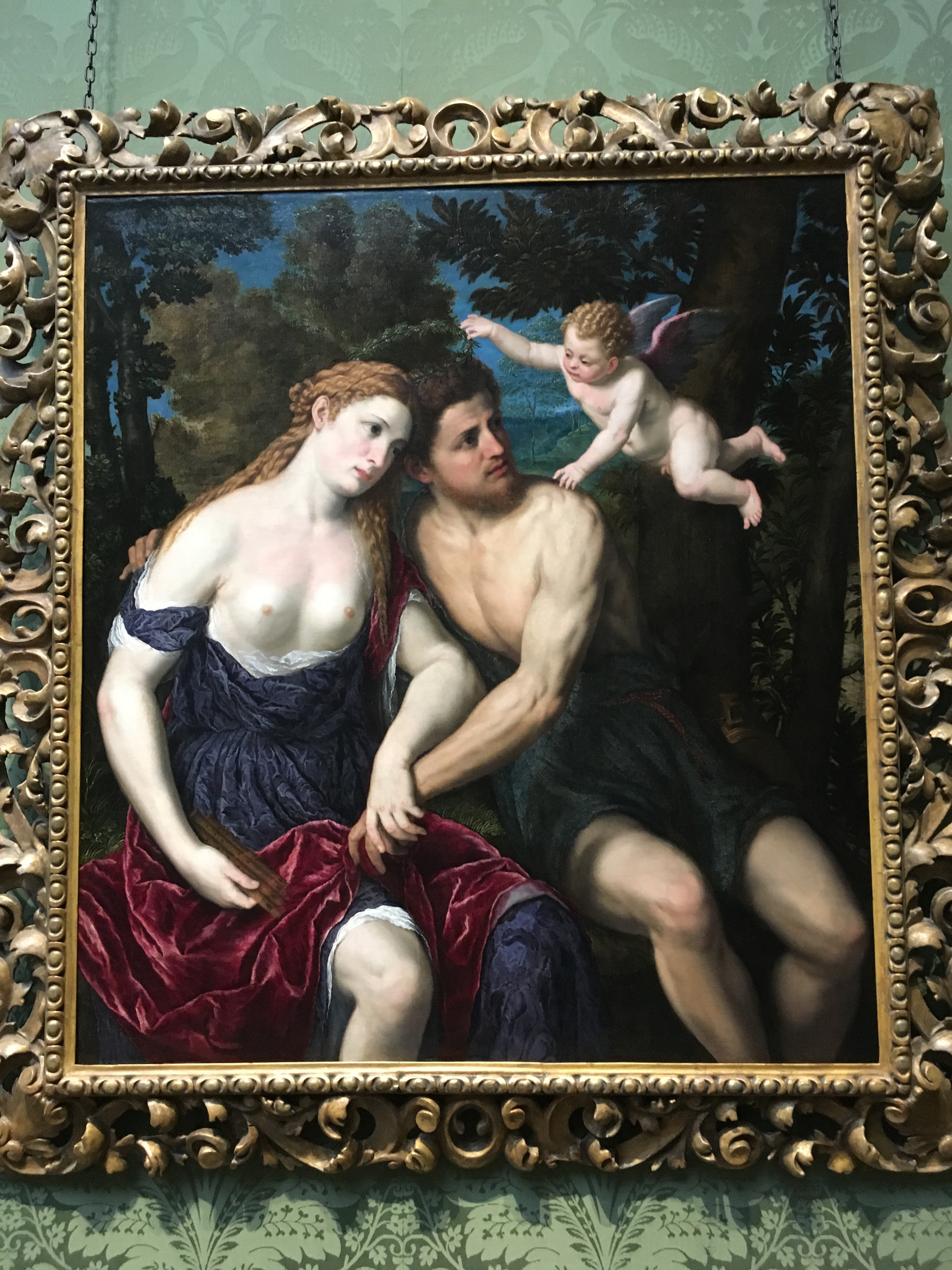 I also like seeing evidence of humanity and the artist’s observations come through in the more mythical paintings. In this one, for example, the woman isn’t all that interesting to me–just a idealized beauty–but the guy looks so specific I can imagine the real person sitting there as a model. And my favorite part is the cupid’s face. It’s hard to see in the photo, but the expression looks exactly like the expressions I’ve seen on my nieces and nephews when they were looking intently at something and trying to figure it out. You know the artist had spent time with a baby to get that look right.